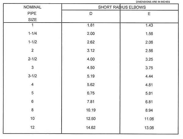 Notes: Dimension D is center to end of fitting. Dimension E and G are center of fitting to end of pipe.
