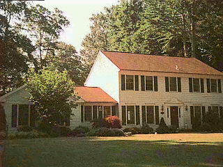 "three" full bath colonial style home is situated on 1.5 acres just