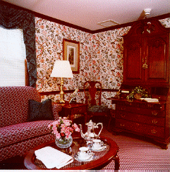 Named for the famous patriot, scientist, and diplomat, this suite would have made Benjamin Franklin feel right at home; as comfortable as you will be among the Queen Anne furnishings and the traditional Williamsburg decor. The sitting room is decorator-furnished with a period settee, coffee table, secretary, and all the accents of a fine 18th century home. The comfortable queen-sized bed and all the bedroom furnishings are of the finest craftsmanship of this bygone era, but the private bath is of a luxury unknown in Mr. Franklin's time.