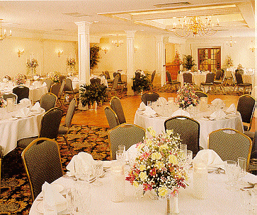 he Surrey Room, with its gleaming brass appointments and charming bow windows, accommodates up to 120 guests.